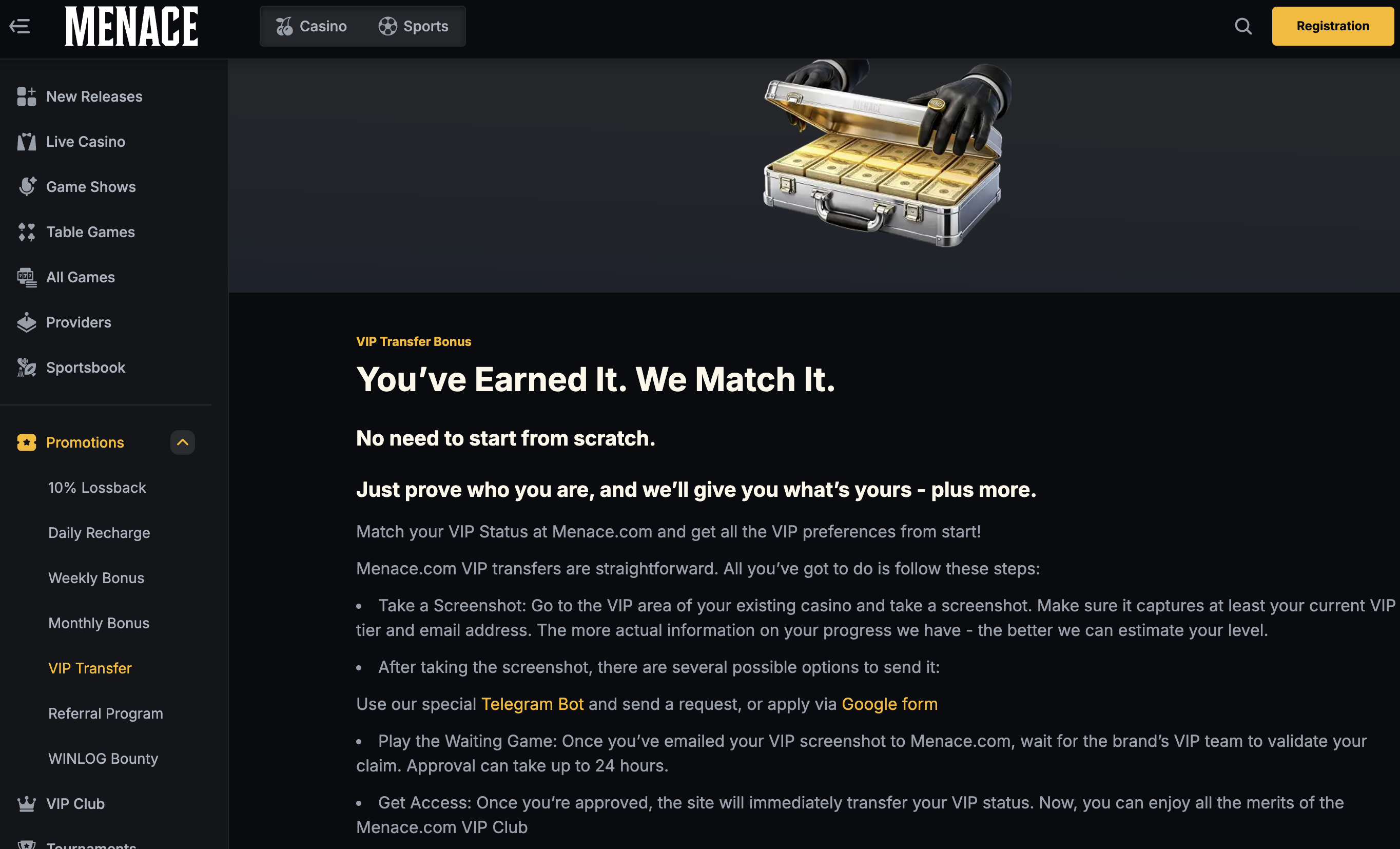 High-value players can transfer their existing VIP status from other platforms and receive: